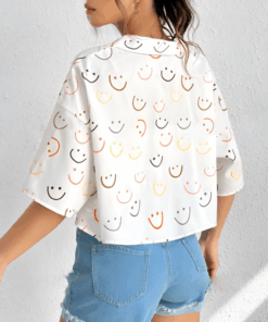 Overall, this shirt is designed to offer a fashionable and comfortable option for summer, featuring a combination of an allover print and drop shoulder style for a relaxed and trendy summer outfit.